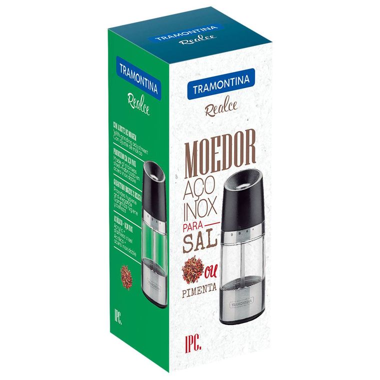 - 1 Moedor para Sal ou Pimenta Tramontina Realce em Aço Inox e Acrílico.