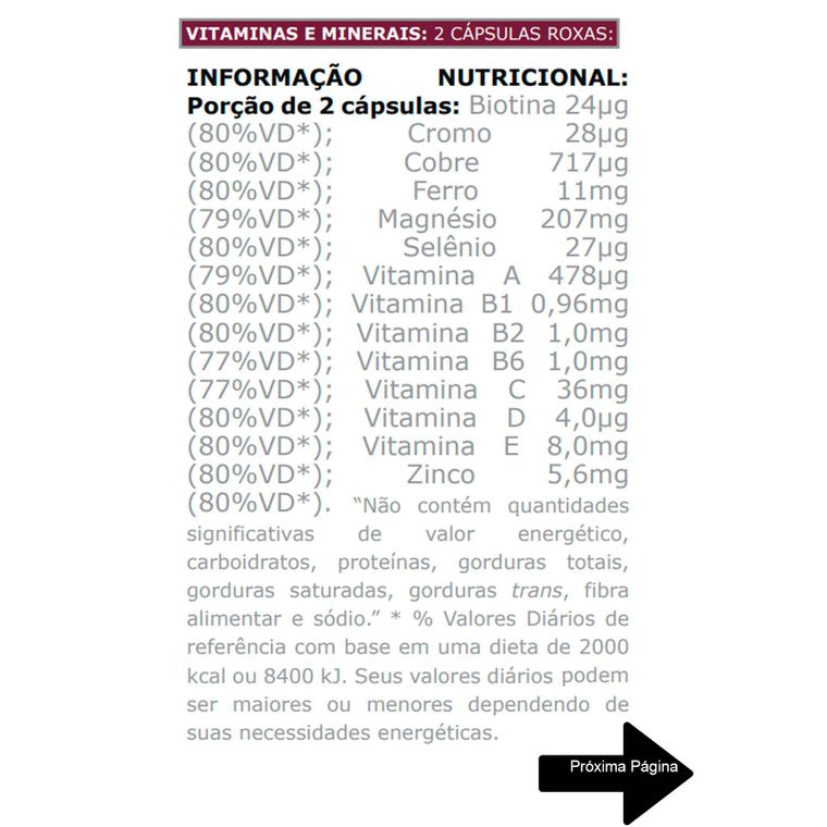 - VITAMINAS E MINERAIS (2 cápsulas roxas)