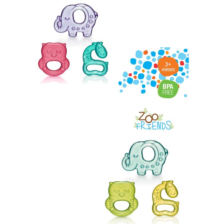 MORDEDOR PARA BEBÊ MACIO RESFRIÁVEL COM ÁGUA ZOO FRIENDS AZUL 0% BPA MULTIKIDS - BB140