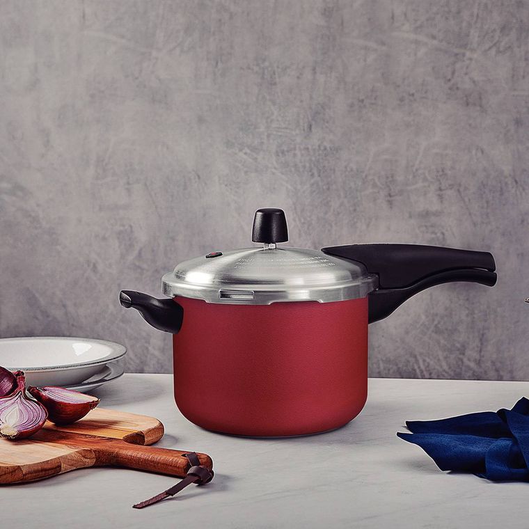 PANELA DE PRESSÃO 4,5L TRAMONTINA VANCOUVER EFFECT EM ALUMINIO COM REVESTIMENTO INTERNO E EXTERNO EM ANTIADERENTE STARFLON MAX VERMELHO 20CM