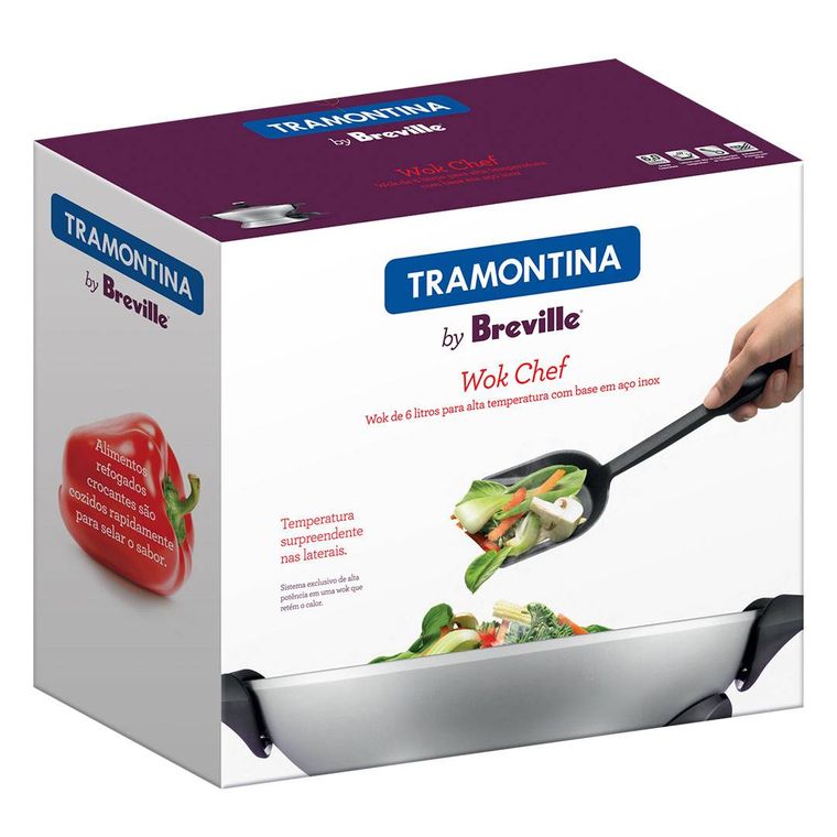 - 1 PANELA ELÉTRICA TRAMONTINA BY BREVILLE WOK CHEF EM ALUMÍNIO FUNDIDO COM TAMPA DE VIDRO 6L 127V
