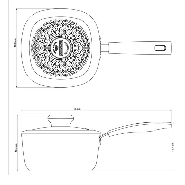 - Alças de aço inox com proteção de silicone com proteção de silicone que proporciona redução da propagação de calor, aumentando a segurança e melhorando a empunhadura.