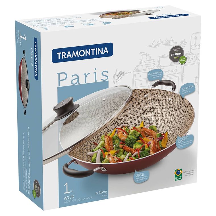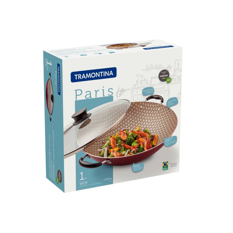 PANELA WOK ANTIADERENTE 4,4L COM TAMPA PARIS - TRAMONTINA