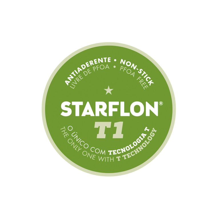 - Revestimento interno e externo de antiaderente Starflon Max que não gruda, é fácil de limpar, mais durável e não é prejudicial à saúde.