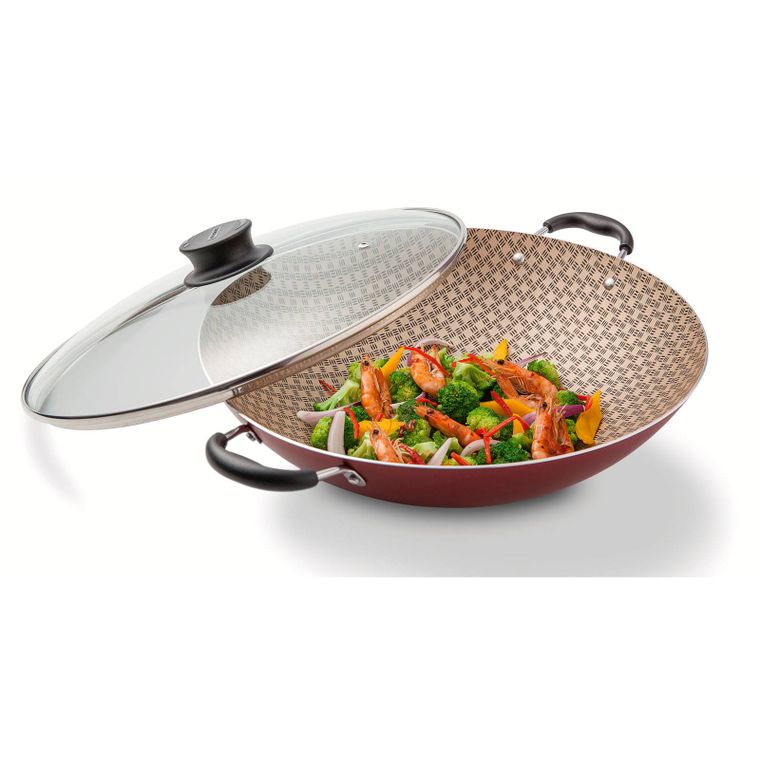 Cozinhar para pessoas especiais fica ainda mais agradável se você tiver como aliada, a Wok Tramontina Paris em Alumínio com Revestimento Antiaderente Starflon Max Vermelho com Tampa de Vidro 32 cm de diâmetro 4,4 L. Além de levar mais cor à sua cozinha, ela garante maior resistência, pois é produzida em alumínio com revestimento interno e externo de antiaderente Starflon Max. Devido a essas características, ela proporciona um cozimento rápido e uniforme, evita que os alimentos grudem em sua superfície e é de fácil limpeza. Para sua segurança, as alças de aço inox contam com proteção em baquelite antitérmico e o pegador em nylon, materiais que não esquentam e oferecem maior segurança durante o manuseio. Ela ainda acompanha tampa de vidro temperado com saída de vapor e borda de aço inox, que facilita a visualização dos alimentos durante o preparo e deixa suas receitas ainda saborosas. Pode ser utilizada em fogões a gás, elétricos, vitrocerâmicos (resistência elétrica) e levada a máquina de lavar louças!
