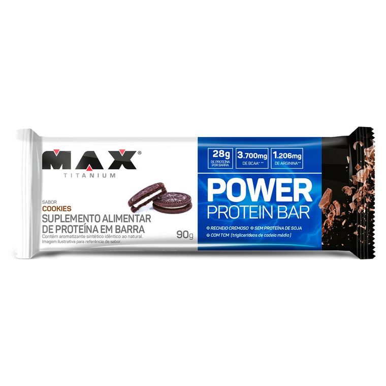 POWER PROTEIN BAR BARRA DE PROTEINA CAIXA COM 8 UN DE 90G COOKIES MAX TITANIUM