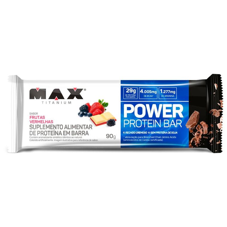 POWER PROTEIN BAR BARRA DE PROTEINA CAIXA COM 8 UN DE 90G – MAX TITANIUM – FRUTAS VERMELHAS