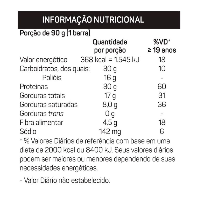 - Até 28g Proteína por barra;