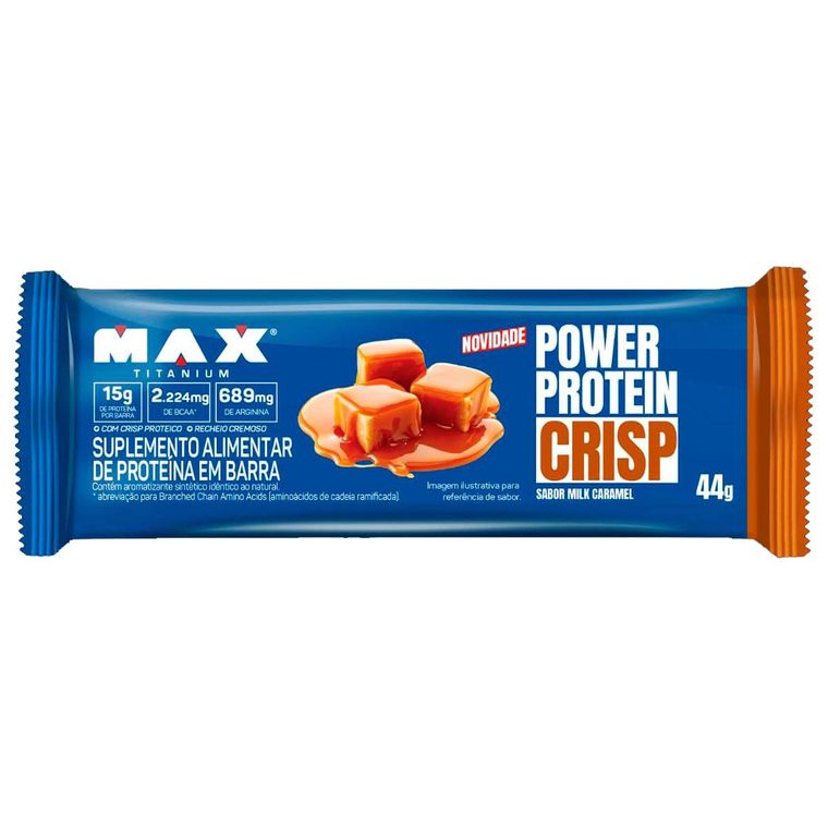 POWER PROTEIN CRISP BARRA DE PROTEINA CAIXA 12 UN DE 44G MILK CARAMEL MAX TITANIUM