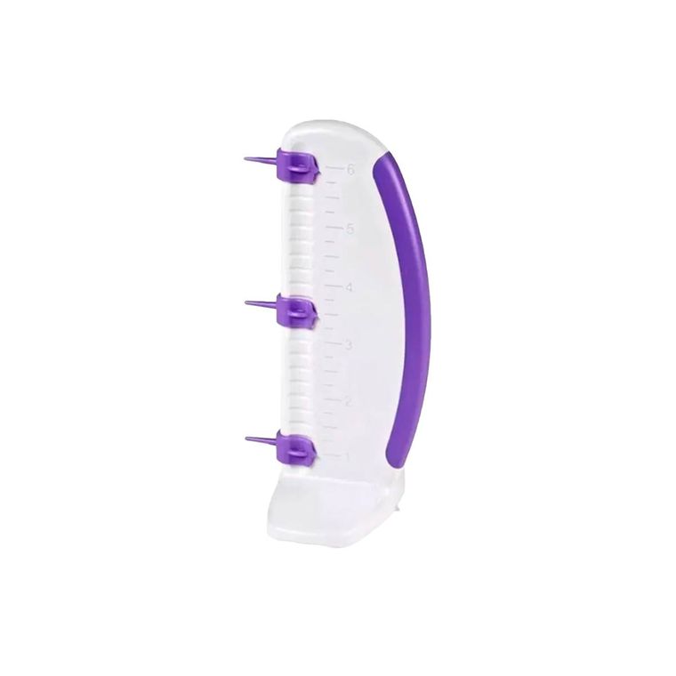 a colocação perfeita de detalhes e bordas.Possui régua vertical e 3 pinos de marcação que se fixam no lugar e uma base reta. Basta colocar o marcador em uma superfície plana ao lado do bolo e movimentar para marcar a posição em vários pontos.