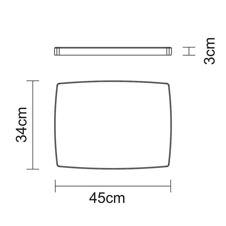 - Tábua para cortar e servir produzida em madeira tropical Teca de alta densidade com proteção em óleo mineral;