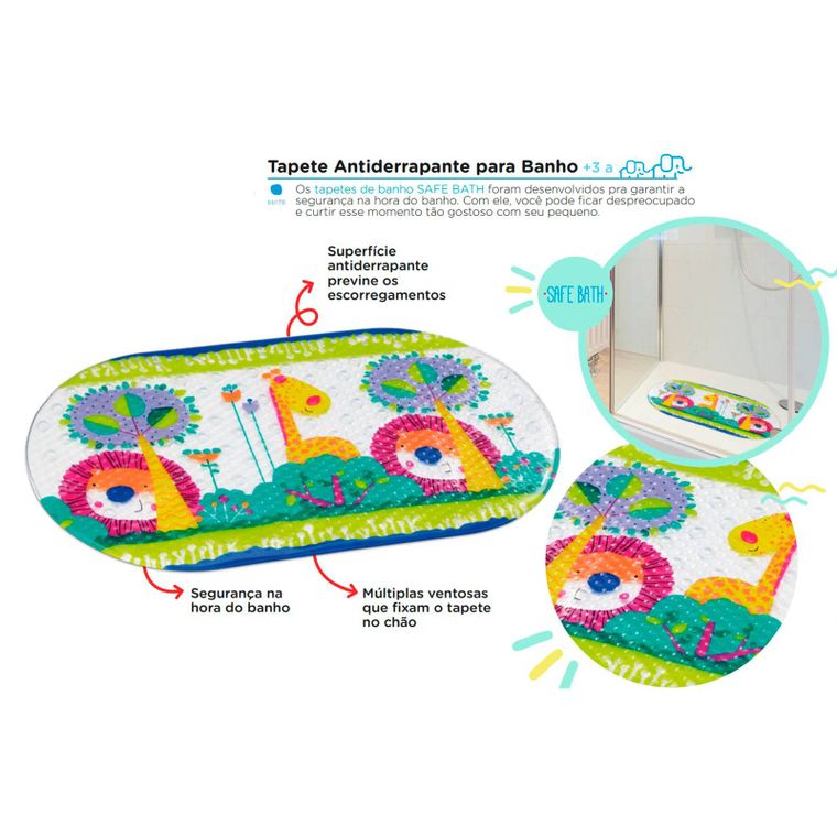 A Multikids Baby sabe que quando se trata da hora do banho do bebê, a segurança vem em primeiro lugar. É por isso que desenvolveu o SAFE BATH. A superfície previne o seu pequeno de escorregar, enquanto as ventosas antiderrapantes ajudam a manter o tapete no lugar, Com ele, você pode ficar despreocupado e curtir esse momento tão gostoso com seu pequeno.