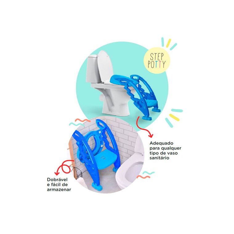 - Adequado para qualquer tipo de vaso sanitário, possibilita a criança de utilizar assentos sanitários de adultos em qualquer situação;
