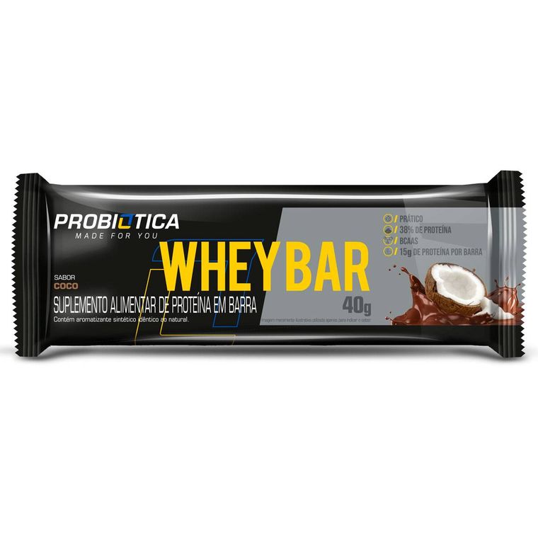 WHEY BAR BARRA PROTEINA 40G CAIXA 24 UN COCO PROBIOTICA
