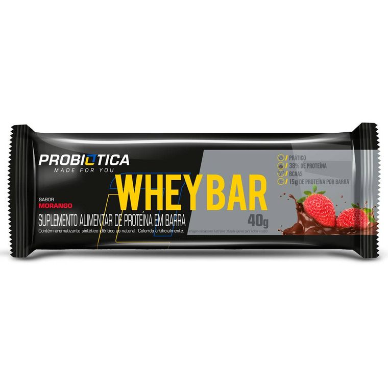 WHEY BAR BARRA PROTEINA 40G CAIXA 24 UN MORANGO PROBIOTICA