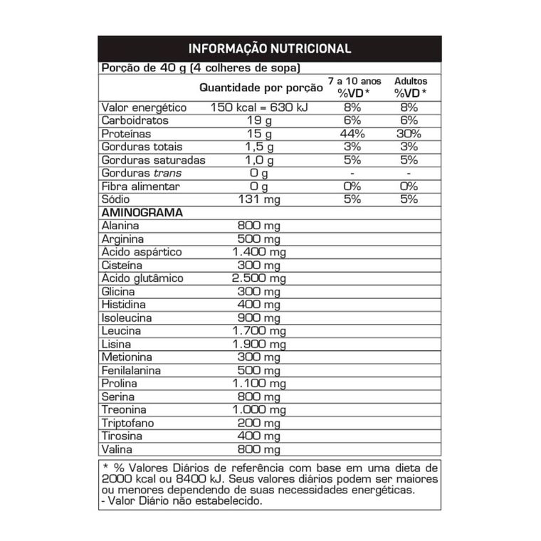 Para o preparo de uma porção, misture 40 g (4 colheres de sopa) em 200 ml (1 copo) da bebida de sua preferência (água mineral, leite desnatado, etc).